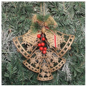 Kit 2 Enfeite Pendente Decoração Natalina Sino Vazado Dourado 25cm