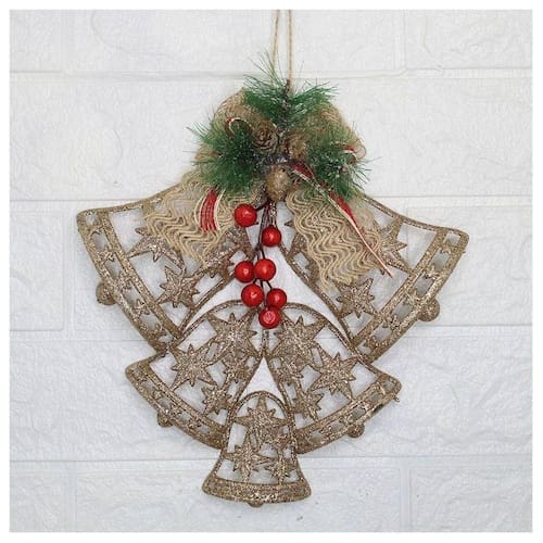 Kit 2 Enfeite Pendente Decoração Natalina Sino Vazado Dourado 25cm -
