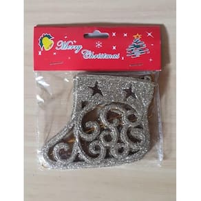- Altura do Enfeite: 9 cm - Largura do Enfeite: 10 cm - Cores: Prateado brilhante, Vermelho brilhante e Dourado brilhante - Material: Plástico