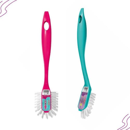 Escova noviça longo alcance A escova de longo alcance noviça conta com um raspador na ponta que te auxilia na remoção de resíduos e suas cerdas são espaçadas e distribuídas de forma que alcance todas as sujeirinhas A limpeza de suas jarras, copos, mamadeiras e taças nunca foi tão simples e feita de forma eficiente como agora.