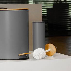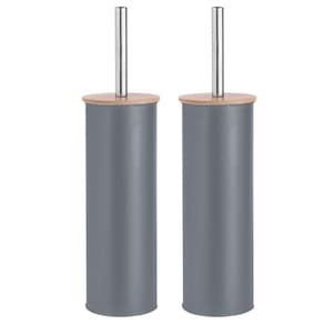 Kit 2 Escova Sanitária Com Tampa De Bambu E Suporte Cinza