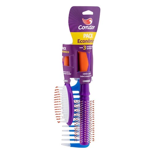 O Kit Escovas para Cabelo Pack Joy da Condor é a escolha certa para quem quer produtos de qualidade para cuidar do cabelo, com escovas e pente de categoria excelente. Para ter os cabelos lindos. CONTÉM os seguintes itens no Kit: I) Escova Maior de Cabelo Médio: feito de Material Sintético e Pigmentos. II) Escova Menor de Cabelo Pequeno: feito de Material Sintético e Pigmentos. III) Pente com Dentes Largos: feito de Material Sintético e Pigmentos.
