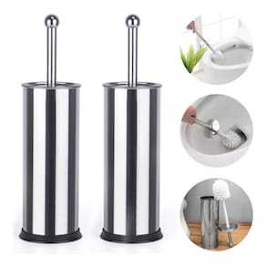 Conjunto de 2 escova sanitária plástica com suporte em aço inox e cerdas flexíveis, ideal para higienizar vasos sanitários. Alta qualidade, sofisticado, elegante e prático.