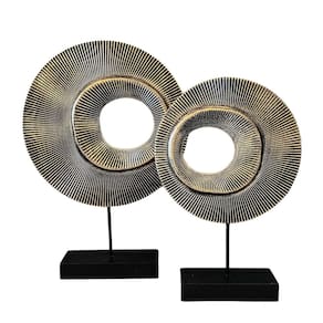 Kit 2 Escultura Abstrata Dourada Decoração Redonda Kit Escultura Decorativa em MDF com Relevo Marrom e Dourado - 2 Peças