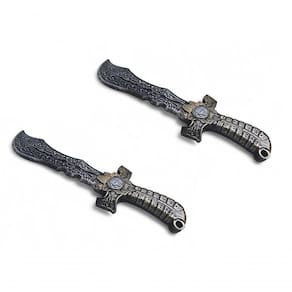 Duas vezes mais ação e diversão! O Kit com 2 Espadas de Combate Warrior Viking JR0345 é perfeito para brincadeiras em dupla ou para quem deseja ter sempre uma espada reserva em suas batalhas. Inspiradas no estilo medieval e , cada peça traz acabamento detalhado em preto e dourado, com entalhes marcantes e empunhadura com brasão de caveira, que garantem um visual épico e realista.