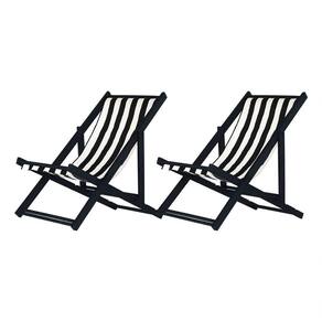 Kit 2 Espreguiçadeiras Dobrável Black Sb-l Preto/branco 2 ESPREGUIÇADEIRAS ENVERNIZADAS BLACK S/BSabe aquele final de tarde que você tanto espera para tirar um descanso merecido? Ou aquela viagem para a praia programada a meses com a família? Pois é, nossas cadeiras espreguiçadeira serve exatamente para esses momentos, com várias opções de cores, os tecidos além de charmosos são hidro-repelentes e se adequam a qualquer ambiente, facilmente removíveis para higienização.Estrutura 100% de madeira maciça e verniz especial, que garante sua qualidade e durabilidade, a espreguiçadeira é totalmente dobrável e reclinável (4 posições de ângulo), perfeita para seu lazer em todos os ambientes, seja ele externo ou interno, esse é o item que definitivamente não pode faltar na vida de quem de fato, quer aproveitar bons momentos! FICHA TÉCNICA DO PRODUTO:04 Níveis de Regulagem de Altura;Tecido Reforçado;Fabricada em Madeira Maciça Pinus;Peso aproximado: 7,5 Kg;Suporta aproximadamente 120 kg;Cor da Madeira: PretaAcabamento: Envernizada Dimensões aproximadas do Produto:Altura 1: 69 cm;Altura 2: 82 cm;Altura 3: 91 cm;Altura 4: 100 cm;Profundidade: 105 cm. Dimensão aproximada total:Comprimento: 135 cm;Largura: 60 cm; Informações Adicionais:Garantia: 90 dias contra defeitos de fabricação.Acompanha 2 cadeiras Obs. A cor pode variar da foto conforme a tonalidade da madeira e iluminação..