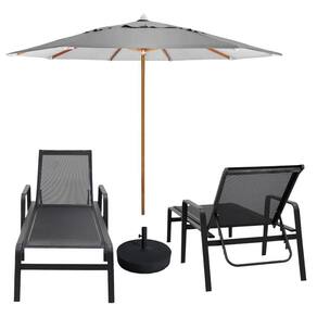O guarda-sol de 3,00m em madeira com base em concreto de 40kg inclusa garante sombra e proteção, tornando o kit perfeito para áreas externas como piscinas, varandas, jardins e áreas gourmet.