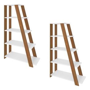 O Kit 2 Estante Multiuso Decorativa 5 Prateleiras Stela A06 Freijó/Branco, da Mpozenato, é perfeito para adicionar um toque de estilo moderno à sua casa.