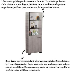 Organização Eficiente: Com quatro prateleiras espaçosas e duas portas, você terá amplo espaço para organizar seus livros, coleções e objetos decorativos de maneira prática e organizada.