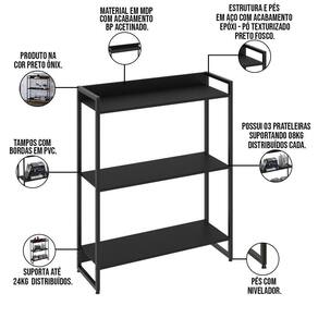 Com o Kit 2 Estantes Multiuso Escritório Industrial 3 Prateleiras Areta 104x80cm C01 Onix - Lyam Decor , o conceito industrial ficará evidente no seu ambiente, tornando o mesmo muito mais moderno, sofisticado e organizado, garantindo isso com 03 prateleiras que deixam tudo prático e funcional. Uma característica muito forte dos móveis industriais é a união do tubular de estrutura exposta com a madeira, que dão todo o charme para agregar no estilo que está entre os mais buscados no ramo de arquitetura e decoração. Adquira já a sua! Dimensões do produto (L x A x P) 80 x 104 x 30 cm Medidas Internas: Altura da prateleira: 39,7cm Largura da prateleira: 76cm Características: 03 prateleiras produzidas em MDP, com acabamento em BP acetinado. Pés em tubo de aço com sapatas niveladoras e acabamento em pintura texturizada epóxi, responsável por criar alta resistência á umidade e produtos químicos, facilitando também na limpeza e manutenção. Fita de borda em PVC. Solda com acabamento suavizado. Produto na cor Onix. Suporta até 8 kg por prateleira. Produto entregue desmontado, acompanha manual de montagem. Para a limpeza, utilize flanela seca. Evite contato com produtos químicos (solventes, thinner, acetona, etc) e não utilize nenhum tipo de esponja de aço. Observações importantes: A montagem será de responsabilidade do comprador; Responsabilizamo-nos pela entrega em todo território nacional, até onde as rodovias alcançam, entregas fluviais ou aéreas devem ser cotadas a parte; As imagens são ilustrativas, não acompanham objetos de decoração e eletrônicos; Não nos responsabilizamos, no ato da entrega, por subir escadas/elevadores ou transporte por guincho em apartamentos. Eventuais despesas são de responsabilidade do comprador; Confira as dimensões do produto e certifique-se de que passará normalmente por supostos elevadores, portas, escadas e/ou corredores de sua residência; NA