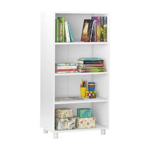 CARACTERÍSTICAS TÉCNICAS: - Estrutura em MDP de 15 mm - Acabamento Fosco na cor Branco - Dispõe de 4 Nichos e 3 Prateleiras - Pés Fixos em Plástico - Suporta até 35 kg *Kit Composto por DUAS Estantes