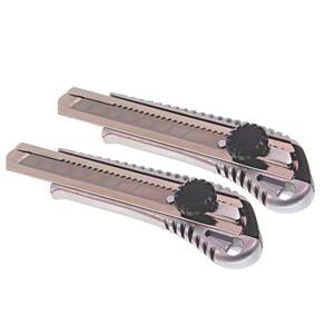 Kit 2 estilete de aluminio ajax profissional com 1 lamina de 18mm Kit com: 2 estilete de aluminio ajax profissional com 1 lamina de 18mm Indicado para realizar cortes em geral, o estilete de alumínio ajax conta ainda com guia metálica, botão parafuso giratório que permite travar a lâmina facilitando seu manuseio. Por seu corpo ser todo em liga de alumínio, ele, além de bonito, fica ainda mais resistente para uso casual ou profissional. Sku: a06021 Acompanha: 1 lâmina Tamanho da lâmina: 18 mm Dimensões do produto sem embalagem: cxlxa cm 4,2x2,3x15,5 cm Peso unitário: 0,085 kg