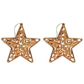 Kit 2 Estrelas Vazadas Tridimensionais Arabesco Bronze Metalizado 10,5cm Enfeite Natalino com Cordão