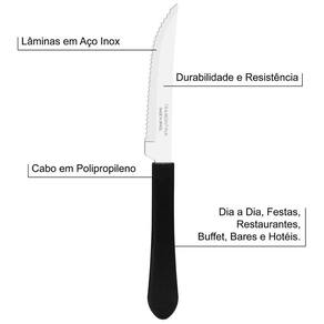 Kit 2 Facas de Mesa Churrasco Tramontina Leme Inox Cabo Preto Você que precisa de talheres de qualidade na hora de receber seus convidados Agora você tem a Faca de Mesa Churrasco Tramontina Leme Inox Cabo Preto é perfeita para essa ocasião. A Faca é produzida com lâmina em aço inox tem maior durabilidade do fio devido ao tratamento térmico e possui cabo em polipropileno proporcionando maior durabilidade e resistência para o uso no seu dia a dia. Além de tudo isso, pode ir à máquina de lavar louças facilitando seu dia a dia ainda mais. Este modelo é ideal para ser em festas, restaurantes, buffet, bar e hotéis. Legal né Compartilhe com seus Amigos Conteúdo do Kit: 2 - Facas de Mesa Churrasco Tramontina Leme Inox Cabo Preto. Características do produto: Lâmina: Em Aço Inox; Cabo: Polipropileno Preto. Dimensões Produto Compr. X Larg. X Alt. : Comprimento: 20,2 cm Largura: 0,9 cm Altura: 1,8 cm TAGS e palavras chave do produto: Imagens ilustrativas. Os objetos que ambientam as imagens, não acompanham o produto. Fique atento: As cores das imagens podem sofrer alterações devido a luminosidade, configurações do monitor e até mesmo a percepção do usuário. Marca: Não Informado Ean: 7898702034361