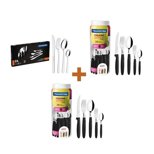 - 2 Faqueiros Inox 30 Peças Ipanema Preto - Tramontina