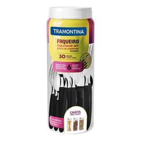 Distribuído pela Casa das SerrasKIT COM 2 FAQUEIROSCARACTERÍSTICAS:- Os talheres da linha Ipanema são próprios para as refeições diárias. Despojados, têm nas diferentes opções de cores dos cabos de polipropileno o toque de alegria que vai à mesa.- As colheres são de aço inox em espessuras que garantem alta resistência e durabilidade. O formato das lâminas impede deformações. Podem ser levados à máquina de lavar.- Restrições/Riscos: Tenha cuidado ao manusear produtos cortantes e perfurantes e mantenha-os fora do alcance de crianças.- Durabilidade: Para garantir a durabilidade dos produtos, recomenda-se secá-los bem após a lavagem, mesmo sendo em máquina de lavar louças.Itens Inclusos:- Antes da primeira utilização, lave bem as peças e seque-as.ESPECIFICAÇÕES:Itens:Faca para churrasco 5"Dimensões (CxAxL) 21,3 x 1,1 x 2,2 cmPeso: 23,7 gGarfo de mesa:Dimensões (CxAxL) 19,1 x 1,6 x 2,4 cmPeso: 25,5 gColher de mesa:Dimensões (CxAxL) 19 x 1,7 x 4 cmPeso: 25,5 gGarfo de sobremesa:Dimensões (CxAxL) 16,5 x 1,3 x 2 cmPeso: 15,8 gColher para chá:Dimensões (CxAxL) 16,5 x 1,6 x 3,4 cmPeso: 20 gDimensões do produto (CxAxL): 10,4 x 27,4 x 10,4 cmPeso: 725 gMaterial:Lâminas de Aço inox.Cabos de PolipropilenoITENS QUE ACOMPANHAM:6 Faca para churrasco 5"6 Garfo de mesa6 Colher de mesa6 Garfo de sobremesa6 Colher para cháCONTEÚDO DA EMBALAGEM:Faqueiro Ipanema Aço Inox 30 Pçs 23398088 Tramontina 2 PeçasIMAGENS MERAMENTE ILUSTRATIVAS