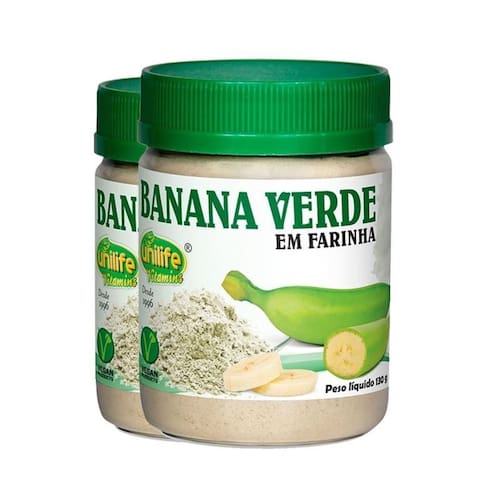 Kit 2 farinha de banana verde 130g unilife Em sua composição natural encontra-se o amido resistente, fibras dietéticas e baixo teor de carboidratos. modo de ingestão: sugere-se a ingestão de 1 colher de sopa 10g ao dia. A farinha de banana verde unilife vitamins pode ser adicionada em sucos, vitaminas, iogurtes, frutas, pães, bolos ou junto de qualquer refeição. ingredientes: farinha de banana verde. produto vegano não contém glúten - livre de lactose produto autorizado para comercialização em todo o território nacional através do anexo i da rdc 27/2010, em conformidade com a rdc 23/2000 da anvisa. Afe do ms 6.02234-1 informação nutricional porção de 10 g 1 colher de sopa quantidade por porção % vd valor energético 33 kcal=138 kj 2 carboidratos 7,5 g 3 proteínas 0,5 g 1 gorduras totais 0,1 g 0 gorduras saturadas 0 g 0 gorduras trans 0 g Fibra alimentar 1,2 g 5 sódio 0 mg 0 % valores diários de referência com base em uma dieta de 2.000 kcal ou 8.400 kj. Seus valores diários podem ser maiores ou menores, dependendo de suas necessidades energéticas. valor diário não estabelecido. Marca: Não Informado