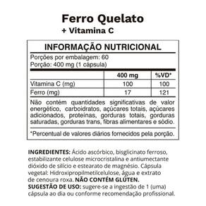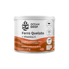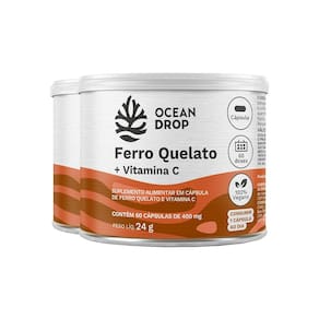 Kit 2 Ferro Quelato + Vitamina C Ocean Drop 60 Cápsulas O ferro desempenha múltiplas funções vitais, incluindo o transporte de oxigênio pela hemoglobina, essencial para o metabolismo celular. Além disso, está presente em enzimas e complexos moleculares que desempenham papéis cruciais no metabolismo energético e na síntese de DNA. Composição: - Ácido ascórbico vitamina C - Bisglicinato ferroso - Estabilizante: celulose microcristalina - Antiumectante: dióxido de silício e estearato de magnésio - Cápsula vegetal: Hidroxipropilmetilcelulose, água e extrato de cenoura roxa - NÃO CONTÉM GLÚTEN. Indicação: - Imunidade - Metabolismo - Anemia ferropriva anemia por deficiência de ferro Modo de consumo: - Sugere-se a ingestão de 1 cápsula ao dia ou conforme recomendação . Contraindicação: - Este produto é indicado para o grupo populacional maior de 19 anos. - Não deve ser consumido por gestantes, lactantes e crianças. - Este produto não é um . Marca: Não Informado