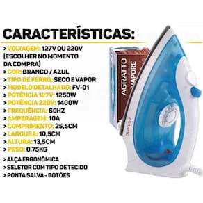 O kit acompanha 2 ferros de passar Agratto, um copo medidor, manual de instruções e possui garantia de 12 meses.