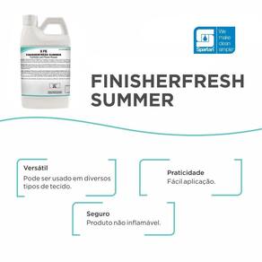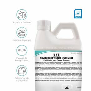 Finisherfresh summer é um facilitador para passar roupas e tecidos de fibras naturais e sintéticas presentes em toalhas, lençóis, edredons, cobertores, cortinas, entre outros, eliminando a aspereza e otimizando o efeito de passadoria, deixando os tecidos macios e perfumados por longos períodos.