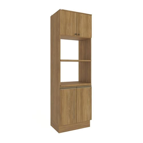 Sua cozinha com toda a beleza e praticidade do Kit Forno e Microondas N730 da Cozinha Celeste da Kappesberg. Produzido em chapa MDF de 15mm, ele garante robustez, firmesa e qualidade, além de um acabamento perfeito. Com sete camadas de pintura na cor nogueira, tanto na parte interna quanto na externa, seu acabamento touch, com a textura dos veios da madeira, além de combinar com todos os ambientes, garante a sensação de conforto e aconchego ao espaço, remetendo aos tons da natureza e deixando sua cozinha perfeita. A peça ideal para quem busca por otimização de espaço, contando com quatro portas e três prateleiras, além de prateleiras reforçadas em 25mm para eletrodomésticos, como forno e microondas. Fechando ótimas combinações com balcões e aéreos, o destaque fica para as dobradiças com amortecimento, garantindo um fechamento suave e sem ruídos, incluindo mais durabilidade. E seus puxadores metálicos na cor dourada completam o design e a qualidade da cozinha, deixando seu ambiente ainda mais estiloso. Renove seu espaço e o deixe ainda mais completo com a Cozinha Celeste da Kappesberg.
