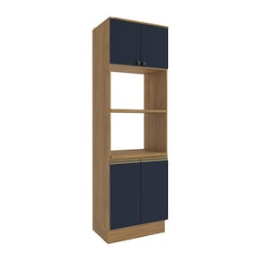 Sua cozinha com toda a beleza e praticidade do Kit Forno e Microondas N730 da Cozinha Celeste da Kappesberg. Produzido em chapa MDF de 15mm, ele garante robustez, firmesa e qualidade, além de um acabamento perfeito. Com sete camadas de pintura tanto na parte interna quanto na externa, a caixaria possui pintura touch na cor nogueira, contando com a textura dos veios da madeira, enquanto que as portas, com pintura na cor azul profundo, possuem acabamento fosco. Uma combinação marcante e moderna, que dará ainda mais destaque ao seu espaço, deixando sua cozinha perfeita. A peça ideal para quem busca por otimização de espaço, contando com quatro portas e três prateleiras, além de prateleiras reforçadas em 25mm para eletrodomésticos, como forno e microondas. Fechando ótimas combinações com balcões e aéreos, o destaque fica para as dobradiças com amortecimento, garantindo um fechamento suave e sem ruídos, incluindo mais durabilidade. E seus puxadores metálicos na cor dourada completam o design e a qualidade da cozinha, deixando seu ambiente ainda mais estiloso. Renove seu espaço e o deixe ainda mais completo com a Cozinha Celeste da Kappesberg.