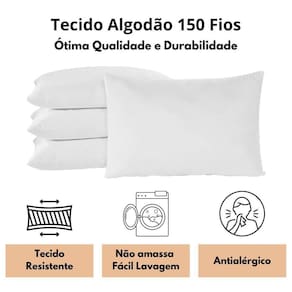 Kit 2 Fronhas Branca Algodão Percal 150 Fios Para Travesseiros Fronha Percar 150 fios foi desenvolvida para garantir uma noite tranquila, proporcionando maior macies e conforto.
