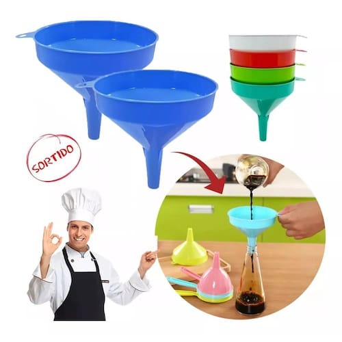 Funil prático para uso geral. Ideal para todo tipo de cozinha. Tenha muito mais praticidade com o funil 12cm, disponível em cores branco, vermelho e verde