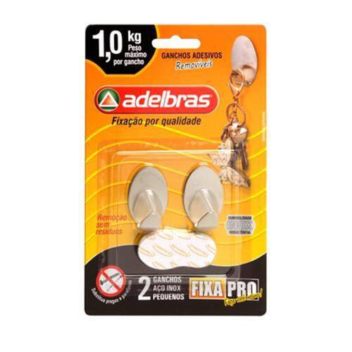 Kit 2 Ganchos Prático Suporte Adesivo Inox 25x37mm 0821000004 Adelbras Kit com Dois Ganchos Em Alumino 25x37mm Adelbras