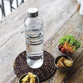 Kit 2 garrafa de vidro euro home quadrada h2o 1 litro ========== sobre o produto ========== A garrafa de vidro euro home quadrada h2o 1 litro é a escolha perfeita para quem busca elegância e funcionalidade no dia a dia. Com design moderno e acabamento sofisticado, ela é ideal para servir água, sucos ou chás com muito mais estilo. Fabricada em vidro transparente e resistente, possui formato quadrado que otimiza o espaço na geladeira ou na mesa. Um item prático e decorativo para sua cozinha ou área gourmet. ========== especificações ========== Capacidade de 1 litro, ideal para uso individual ou familiar. Design quadrado, moderno e funcional, que ocupa menos espaço. Fabricada em vidro resistente, fácil de limpar e elegante. ========== ficha técnica ========== Unidades: 2 Medidas: 31 x 8 x 8cm Material: vidro / inox Marca: euro home : 3 meses Estamos online para quaisquer dúvidas, Agradecemos e aguardamos o seu pedido. P: a garrafa vem com tampa R: sim, ela acompanha tampa que ajuda a conservar o conteúdo por mais tempo. P: pode ir à geladeira R: sim, a garrafa pode ser armazenada na geladeira sem problemas. P: é indicada para líquidos quentes R: recomendamos o uso com líquidos frios ou em temperatura ambiente para preservar a durabilidade do vidro. P: o produto é novo ou