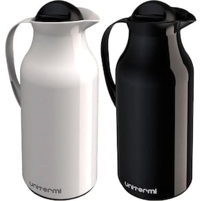 1 Garrafa Térmica Preto com 28cm de altura e 11cm de diâmetro, 1 Litro;1 Garrafa Térmica Branco com 28cm de altura e 11cm de diâmetro, 1 Litro;