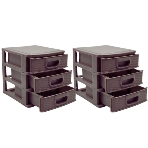 Kit 2 Gaveteiro Organizador De Mesa 3 Gavetas Textura Marrom