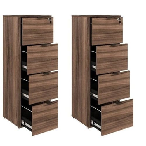 O arquivo para pastas suspensas KUAQ40 tem um design diferenciado, possui 04 gavetas sendo 01 com chave, além dos puxadores de metal e corrediças telescópicas que dão mais suporte a peso e segurança. Pode ser utilizado em diversas composições com outros móveis, sendo perfeito para fazer parte do seu escritório ou sala. A linha Kuadra tem seu design com inspiração no estilo industrial, que remete muito a decoração usada nos lofts das grandes metrópoles nos anos 60 e 70. Harmonizando o metal e os tons de madeira, foram projetados móveis versáteis e com estilo, que podem compor ambientes flexíveis cheios de personalidade, perfeitos para você decorar sua casa ou seu trabalho, tendo um resultado que caminha do estilo rústico ao moderno. Suas estruturas são fabricadas em aço, com soldas suavizadas e pintura texturizada epóxi-pó, conta com pés niveladores de altura e parafusos na cor preta. Para os tampos são utilizados mdp-bp acetinado com fitas de borda em pvc, dando uma maior durabilidade ao seu móvel. Altura do Conjunto: 136.5 cm Ambiente: null Ambiente Principal: Escritório Cor: Marrom Informação Complementar: 2x Gaveteiro Arquivo 4 Gavetas para Pastas Suspensas Kuaq40 Kuadra Nogal/Preto Ônix Largura: 45,5 cm Altura: 136,5 cm Peso: 31,69 kg Profundidade: 43 cm Necessita Montagem: Sim