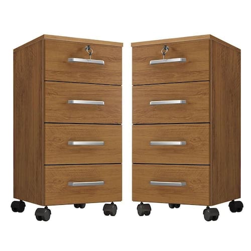 Kit Gaveteiro para Escritório com Chave e Rodízios 4 Gavetas Gávea