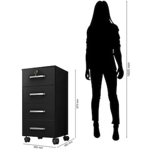 Um gaveteiro perfeito para escritório no qual você tem facilidade de manuseio com seus pés de rodízios e a segurança de guardar objetos e documentos na primeira gaveta pois vem com uma chave! Todas as suas 4 gavetas vem com amplo espaço para você organizar o que precisar! Aproveite!