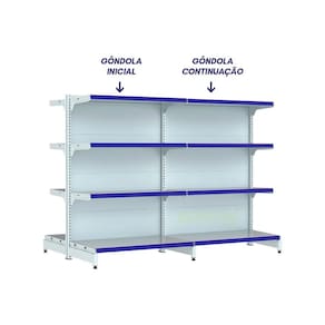 \nNosso kit com 2 gôndolas de centro na cor branca é ideal para armazenamento e exposição de produtos em supermercados, mercearias, farmácias, lojas de utilidades, materiais de construção, agropecuárias, e muito mais, variando de acordo com a capacidade de peso de cada modelo.com 1,37m de altura, esta gôndola proporciona uma exibição eficiente dos produtos, maximizando o espaço vertical da sua loja e permitindo uma organização prática e acessível.as gôndolas possuem uma capacidade de 40kg por bandeja. com pintura eletrostática epóxi, antibacteriana, uniforme e resistente.possui bandejas com inclinação em 3 posições e bandejas reguláveis na coluna a cada 25mm, o que permite adição de bandejas extras. a bandeja é construida em chapa 26 (espessura de 0,50mm). fundo da bandeja quadrado para melhor exposição.pés com regulagem de altura, colunas dupladas e tratamento especial da superfície.a gôndola é prática e fácil de montar, com sistema de encaixe sem utilização de parafusos. você pode instalar suas gôndolas rapidamente, sem complicações, permitindo que você comece a exibir seus produtos em pouco tempo.todas as nossas gôndolas possuem qualidade, resistência e durabilidade garantidas pelo uso de matérias-primas de alto padrão, processos produtivos com a mais atual tecnologia e um cuidado especial em cada etapa.modernas e elegantes, nossas gôndolas são projetadas para destacar seus produtos e criar um ambiente agradável de compras para seus clientes, incentivando a exploração e aumentando as vendas.aproveite ao máximo cada centímetro disponível em sua loja com nossas gôndolas projetadas para maximizar o espaço de exposição, permitindo uma ampla variedade de produtos em um layout eficiente.- capacidade de 40kg por bandeja;- colunas dupladas: com sistema de encaixe, sem utilização de parafusos;- tecnologia exclusiva de apoio sgl;- pés reforçados e com regulagem;- bandejas inclináveis: oferece 3 opções para melhor exposição;- bandejas reguláveis a cada 25mm: possibilidade de adicionar bandejas extras;- reforço na base e bandeja: para maior capacidade de carga e estabilidade;- bandeja é construida em chapa 26;- ponteira da coluna: maior proteção e durabilidade.*porta etiquetas: vendidos separadamente, em variadas opções de cores.> o kit contém- 01x gôndola new premium 1,37m branca centro inicial- 01x gôndola new premium 1,37m branca centro continuação> especificaçõesgôndola centro inicialmodelo: gôndola de centro iniciallinha: fit 40altura: 1,37mcor: brancaquantidade de bandeja: 8 (4 em cada lado)peso suportado por bandeja: 40kgchapa: 26gôndola centro continuaçãomodelo: gôndola de centro continuaçãolinha: fit 40altura: 1,37mcor: brancaquantidade de bandeja: 8 (4 em cada lado)peso suportado por bandeja: 40kgchapa: 26> medidas do produtogôndola centro inicialaltura: 1,37mlargura: 0,96mpeso: 28kglargura da bandeja: 0,90mprofundidade da bandeja base: 0,40mprofundidade das bandejas superiores: 0,30mgôndola centro continuaçãoaltura: 1,37mlargura: 0,93mpeso: 23kglargura da bandeja: 0,90mprofundidade da bandeja base: 0,40mprofundidade das bandejas superiores: 0,30m> garantia- 6 meses> troca e devoluçãomediante termos da política de trocas e devoluções da empresa.