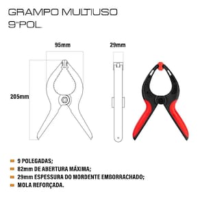 O Kit 2 Grampos Multiuso de 9 da MTX é ideal para atividades de fixação e colagem de diversos materiais. Fabricado em plástico ABS de alta resistência, garante durabilidade e segurança em qualquer tipo de ambiente, inclusive os úmidos. Seu design leve, com alavanca de pressão, facilita o uso e proporciona uma fixação firme e segura. Essencial para profissionais como marceneiros, carpinteiros e pedreiros, é uma ferramenta versátil para diferentes aplicações, como fixar lonas, coberturas e telas.