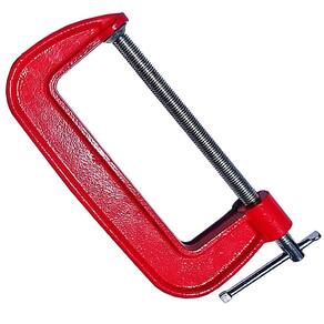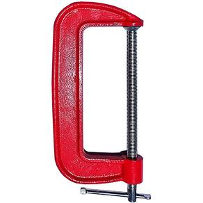 Grampo Sargento 4 Pol. Tipo C em Ferro Charbs. Corpo em ferro fundido, Fuso em aço especial. Utilizado em marcenarias para firmar ou prender peças que necessitem ser trabalhadas ou coladas.