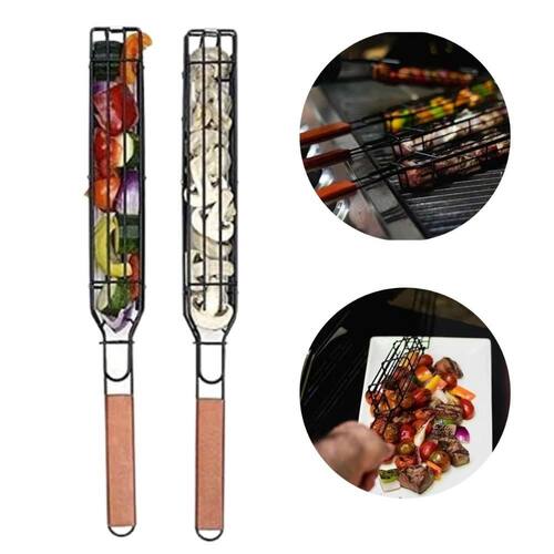 Diferente dos espetos tradicionais, que podem ser difíceis de virar, essas cestas para kebabs possuem bordas planas e pás que tornam o processo de virada mais fácil e eficiente.