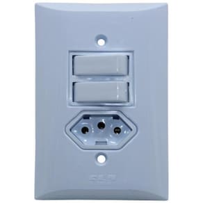 Conjunto contém: 1 Placa 1 Módulo com 1 tomada 20A 3 pinos + 2 interruptores simples