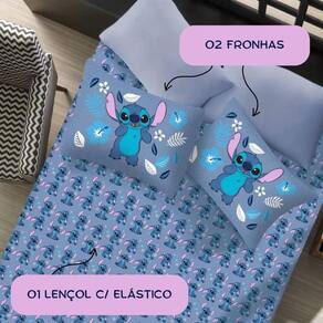 Kit 2 Jogos Cama Stitch Casal com Elástico Oficial Disney Olá, amigas os