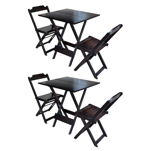 Kit 2 Jogos de Mesa Dobravel com 2 Cadeiras de Madeira 70x70 - Tabaco - Marrom