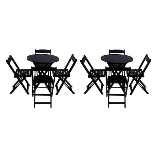 Kit 2 Jogos De Mesa Dobravel Com 4 Cadeiras Tampo Redondo 70x70 Preto é ideal para bares, restaurantes, estabelecimentos, áreas de lazer e tambem para sua casa. Feito em madeira maciça, tornando resistentes e duráveis. Seu design permite que seja encaixado em qualquer ambiente, trazendo um toque a mais para seu estabelecimento. Além de sua durabilidade, o que lhe trará conforto para servir seus clientes. Por ser dobrável torna-se mais fácil guardar, manusear e limpar o produto. Atenção: EVITE USAR PRODUTOS ABRASIVOS E QUíMICOS PARA LIMPEZA DO PRODUTO, aconselha-se o uso de pano umedecido para melhor conservação; mantenha o produto fora de chuva e sol constantes MESA Cor: Preto Modelo: Dobravel Dimensões: Altura 75cm | Largura 70cm | Profundidade 70cm CADEIRA Cor: Preto Modelo: Dobravel Dimensões: Altura 80cm | Largura 45cm | Profundidade 42cm