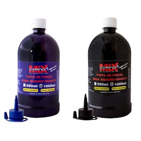 Kit 1 litro preto, 1 litro azul.Marca: Carinon MixO Produto: - Não Mancha Os Quadros,- Fácil Remoção,- Cores Fortes E Vivas Para Melhor Visualização,- Frasco Com Bico Aplicador Para Facilitar A Injeção Nos Refis E Pincéis,- 20 Recargas.Ideal Para: Uso Comercial, Escolar. Para Pincel Marcador De Quadro Branco.Dimensões: Compr. 160 Mm Larg. 95 Mm Diâm. 290 Mm.Embalagem: 1 Unidade De 100 MlCor: Preto e Azul