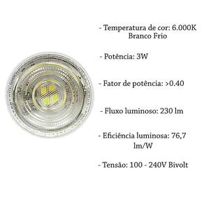 Lâmpada led mini dicroica mr11 gu10 3w 6000k branco frio