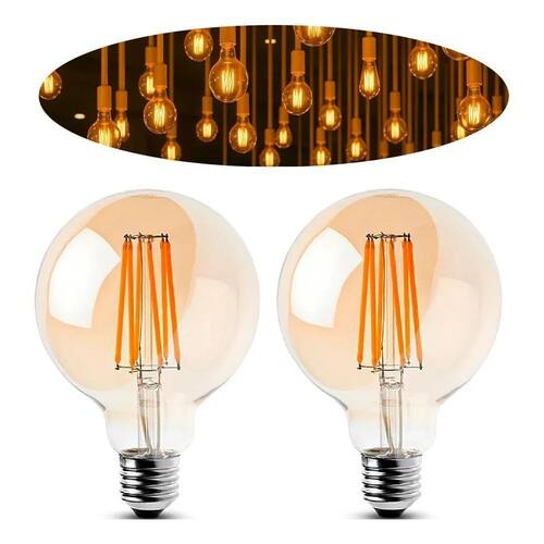 Kit 2 Lâmpada Filamento Led G80 Vintage Âmbar Branco Quente