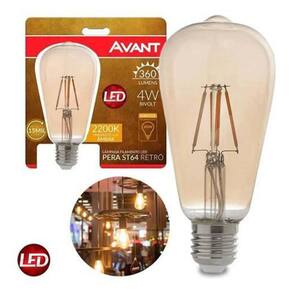 Lâmpada led de filamento pera st64 luz âmbar 4w avant bivolt