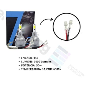• Encaixe: H3 • Temperatura de Cor: 6500k (Branco Frio) • Fluxo Luminoso: 3000 Lúmens • Tensão de Entrada (Voltagem): 10~ 30V • Potência de Saída: 50w • Voltagem: 12-24 v • Vida Útil: 30.000 Horas • Temperatura de Operação: -45ºC a +165ºC • Resistência a Umidade: Ip65 • Dissipador de Calor em Alumínio de Aviação