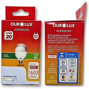 Kit 2 lampadas superled alta potencia ourolux 20w e27 6500k Lampada superled alta potencia ourolux t20w e27 6500k bivolt Descrição do produto Ilumine seu espaço com eficiência e estilo o superled alta potência ouro 20t 6500k é a escolha perfeita para quem busca uma iluminação potente e clara. Com uma temperatura de cor de 6500k, ele oferece uma luz branca fria que é ideal para ambientes de trabalho, escritórios, garagens e muito mais. Características - alta potência bivolt: proporciona uma iluminação intensa, garantindo visibilidade em grandes áreas. - longa durabilidade: vida útil prolongada, diminuindo a necessidade de trocas frequentes. - fácil instalação: design prático que se adapta a diferentes tipos de luminárias. - tamanho do produto: 10cm altura x 6cm largura x 7cm de diametro. - : 3 meses - composição: polímero termoplástico, metal e componentes eletrônicos. - certificação: inmetro - cor: branco frio - base de conexão: e27 - fluxo luminoso: 1600 lm - eficiência energética: 80 lm/w - potência: 20w Vantagens - longa vida útil: menos trocas e manutenção. - sustentável: menor impacto ambiental em comparação com lâmpadas convencionais. - design moderno: se adapta a qualquer decoração. Aplicações Perfeito para escritórios, lojas, fábricas, ou qualquer ambiente que necessite de iluminação clara e eficiente. Marca: Não Informado