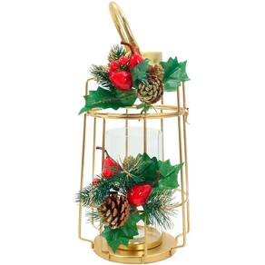 Kit 2 Lamparina Dourada Natalina Em Metal Decorativa De 36cm -